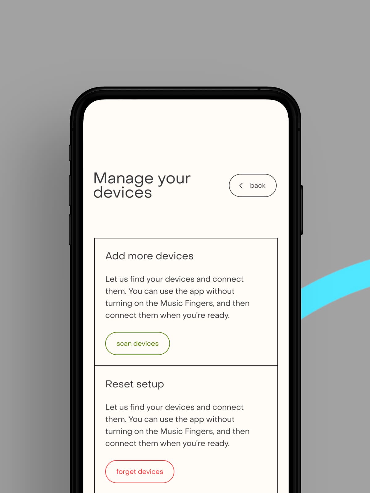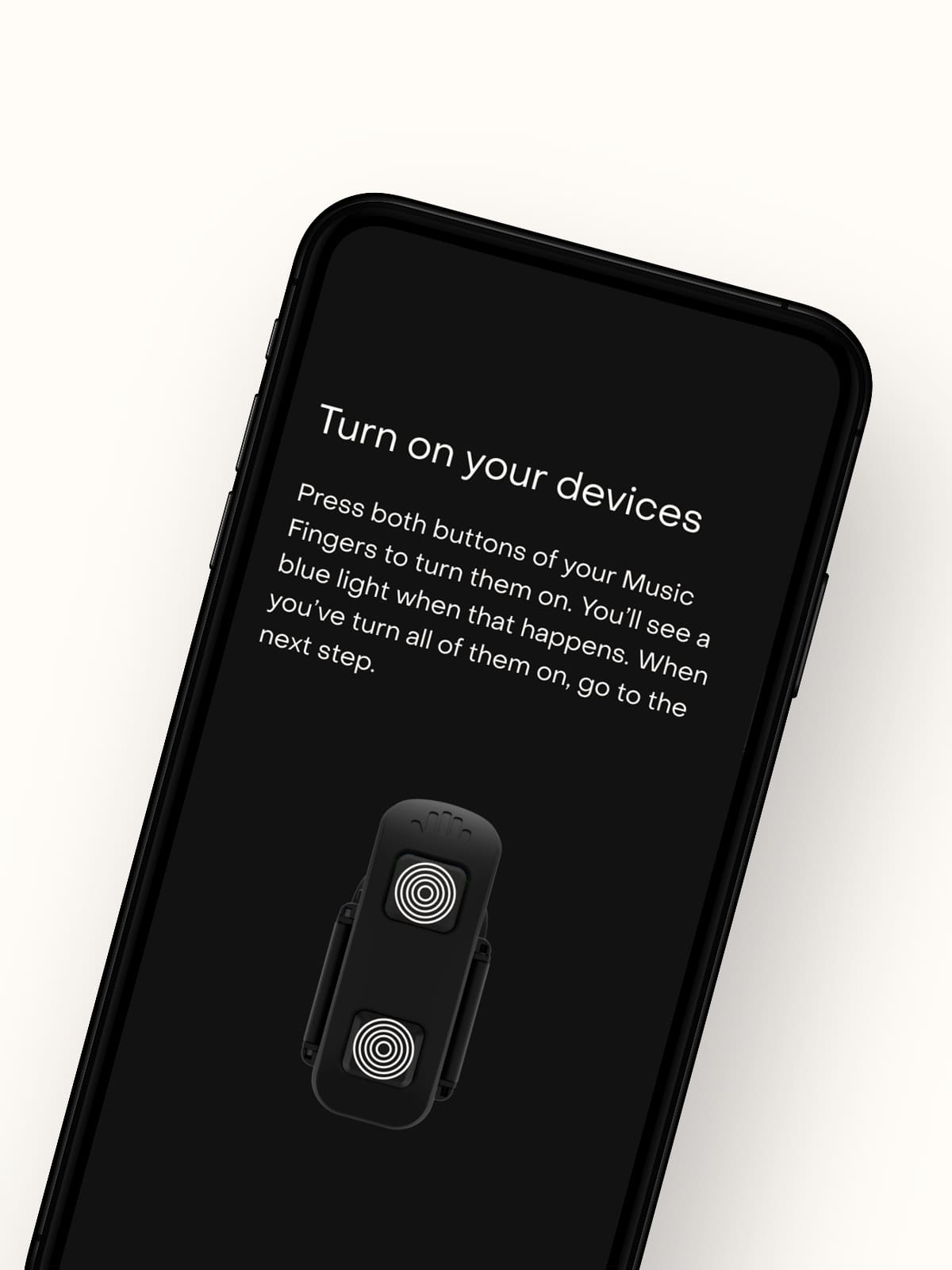 Turn on your Music Fingers® devices just by pressing both buttons.